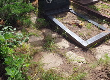 На фотографиях ниже видно промежуточное состояние места захоронения после укладки наземного покрытия и восстановления цветника.