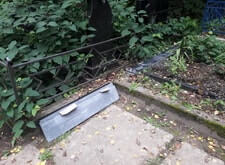 Исходное состояние: Покосившийся памятник, проржавевшая ограда, сорняки